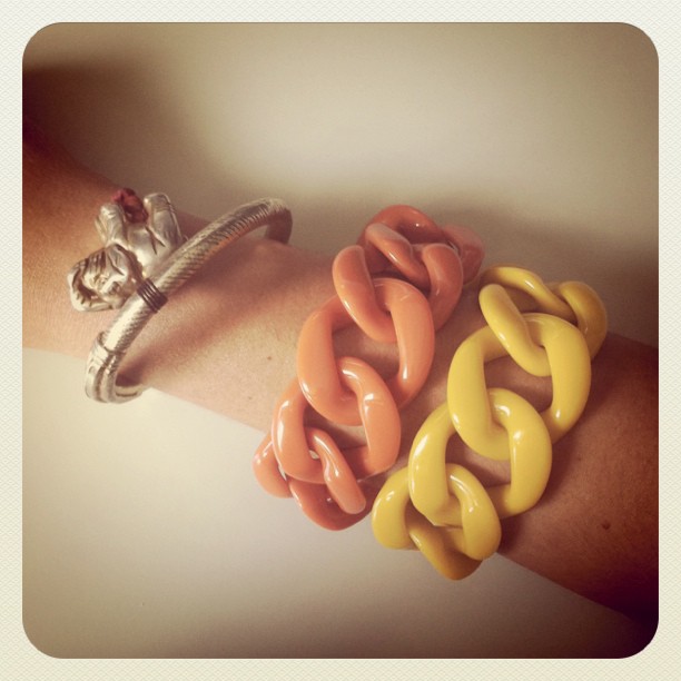 Iniziano ad esserci i primi caldi, iniziamo ad indossare le prime magliette a maniche a 3/4 e quindi non possono mancare dei bei bracciali colorati, grossi e rumorosi. Con queste caratteristiche non possiamo che optare per i BANGLES di